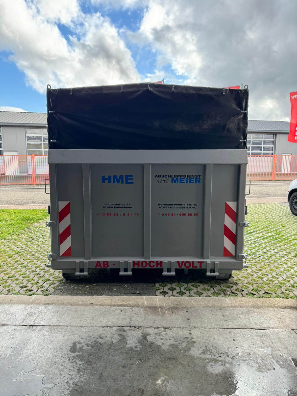 Der Spezialcontainer ist eine notwendige Methode zum Bergen von Elektro- und Hybridfahrzeuge. Er verfügt über ein Planen Gestell zum Abdecken, das die Fahrzeuge vor äußeren Einflüssen schützt. Eine Rampe und ein Seilwindenfenster ermöglichen ein sicheres Einziehen der Fahrzeuge. Zwei Anschlüsse zum Befüllen mit Wasser dienen der Kühlung der Batterien. Die Ferntemperaturüberwachung gewährleistet eine kontinuierliche Überwachung der Temperaturen während des Transports und im notwendigen Zeitraum danach.
